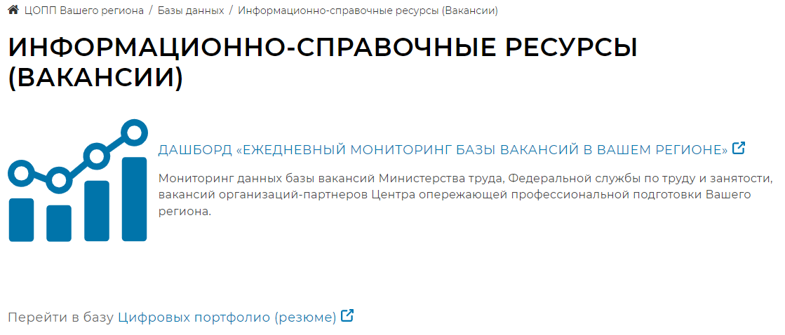 На странице также размещены дополнительные ресурсы для поиска работы.