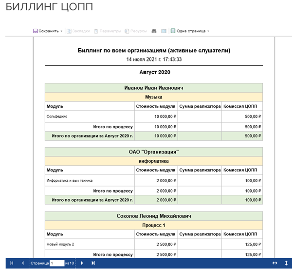 Отчет биллинга доступен на странице Биллинг ЦОПП из меню личного кабинета Администратора.