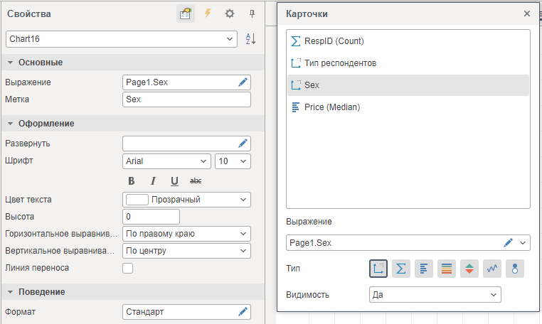 Формат - предоставляет возможность указать текстовое форматирование для значений текущего поля данных.