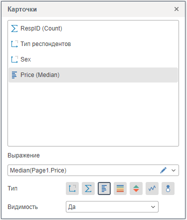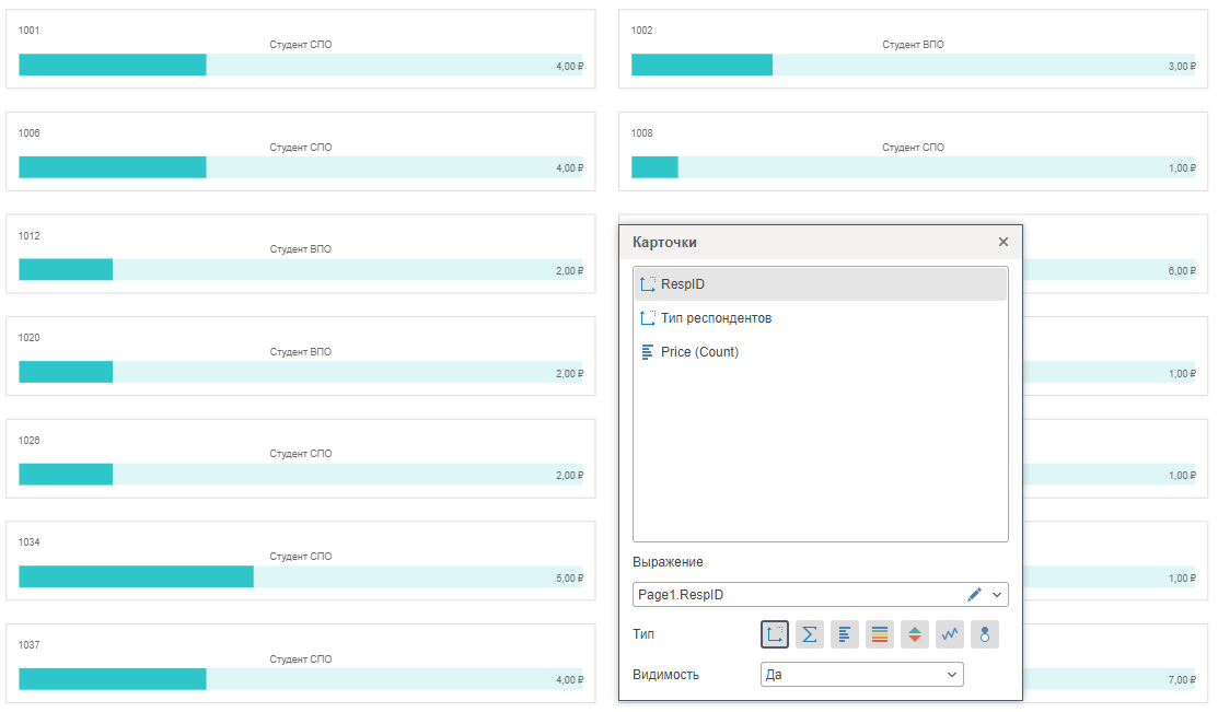 В нем осуществляется добавление полей с данными, определяется порядок их вывода в каждой карточке, удаление, а также включение различных типов графического анализа данных.