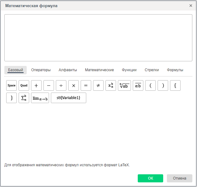 Компоненты К компонентам относятся: Текст, Кросс-таблица, Таблица и другие элементы. Компоненты могут добавляться как напрямую на страницу, так и в качестве элементов к Заголовкам и Итогам. Редактор компонента Математическая формула