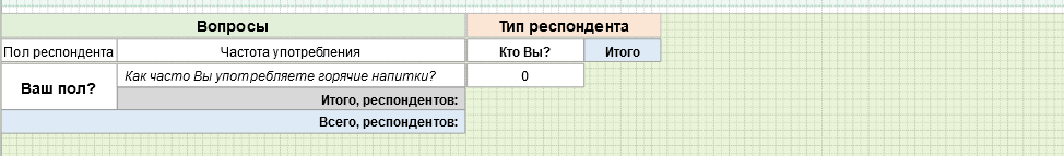 Столбец справа - Панель предварительного просмотра структуры кросс-таблицы. Красная рамка вокруг ячейки означает, что данная ячейка выделена.