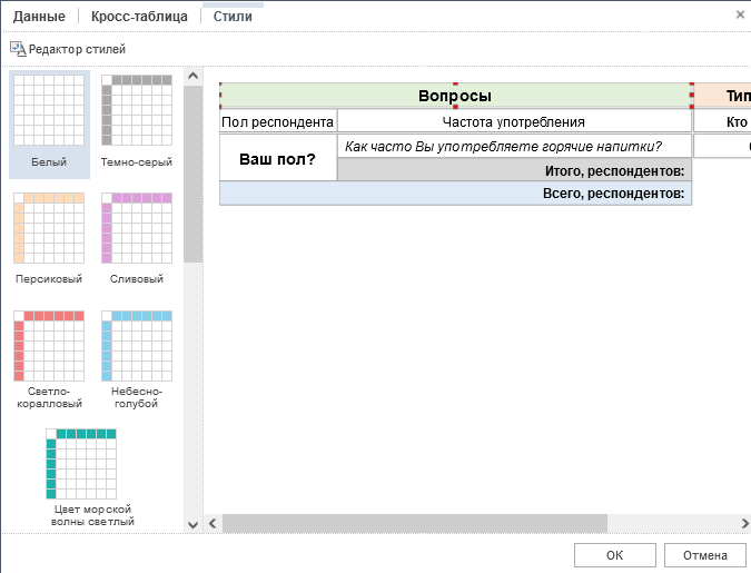 Завершающим этапом создания кросс-таблицы является добавление кросс-таблице стиля: