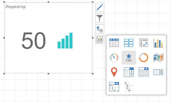 При создании панели индикаторов, рабочая область отображается в виде белого листа с сеткой. Для того чтобы изменить размер панели индикаторов, необходимо: