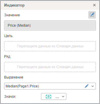 Например, в поле Значение индикатора задано поле данных с минимальной ценой за 1 товара, а в поле Цель - названия товаров, но без указания ряда, то будет отображен один индикатор.