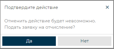 Всплывающее окно подтверждения подачи заявки на отчисление