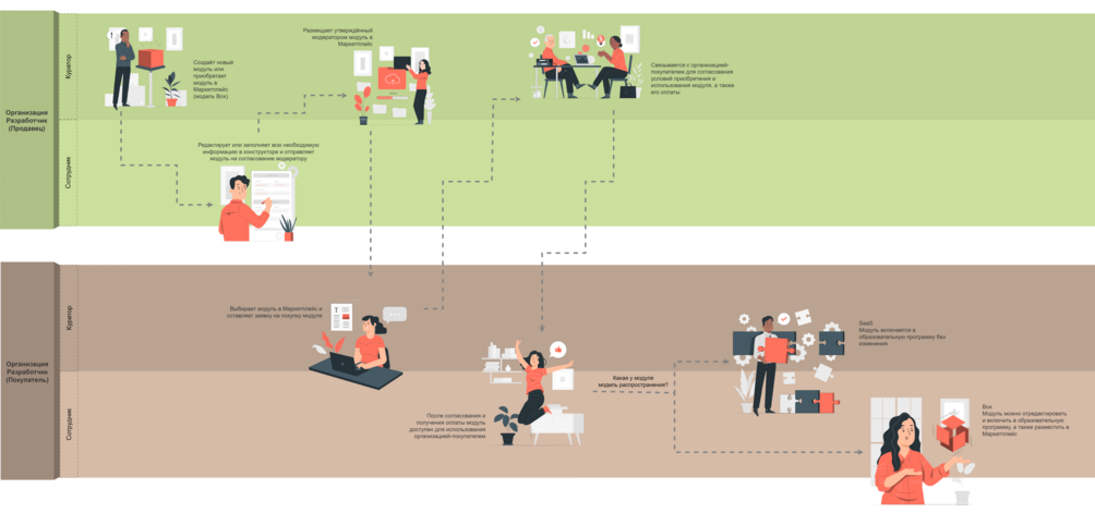 • размещать разработанные организацией образовательные модули во внутреннем Маркетплейсе Платформы для их продажи зарегистрированным организациям с ролями разработчик и реализатор образовательных программ и модулей;