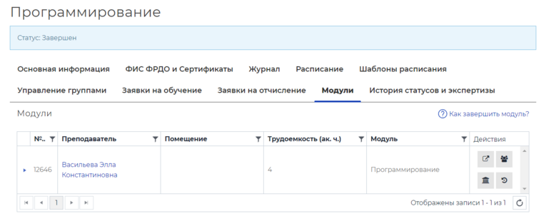 Для того, чтобы ответственный за процесс, смог завершить процесс, преподаватель каждого модуля должен завершить свой модуль.