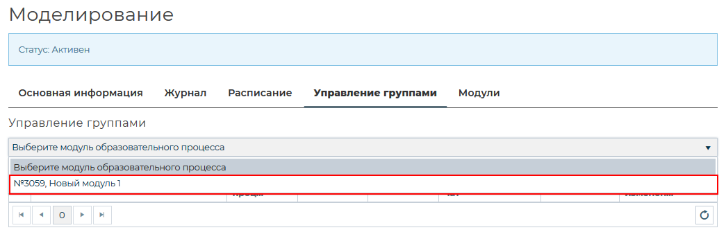 в окне с надписью «Выберите модуль образовательного процесса» и выбрать из выпадающего списка модуль, по которому будет проходить обучение.