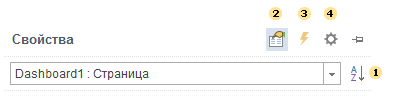 На панели Свойства отображаются свойства выделенного компонента Аналитического отчета или элемента Панели индикаторов.