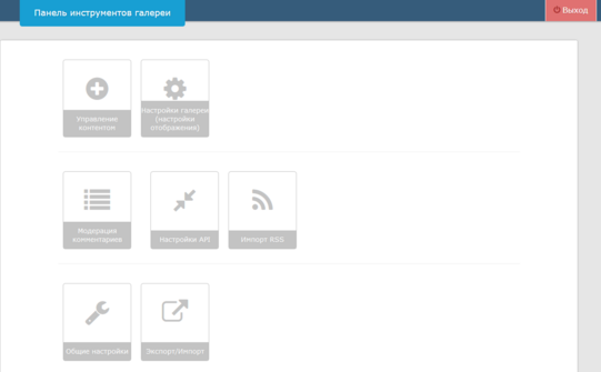 Панель управления. Раздел Настройки галереи