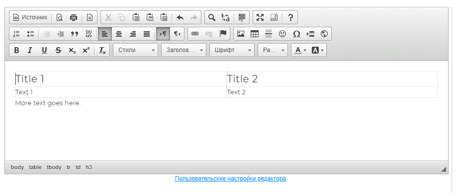Если необходимо внести другие изменения в таблицу, необходимо перейти в Источник и добавить нужные атрибуты тегов таблицы и значения этих атрибутов HTML-кодом.