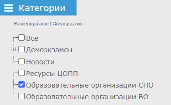 Затем выбрать категорию «Образовательные организации СПО» или «Образовательные организации ВО».