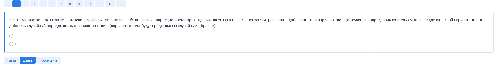 Отображение прохождения анкеты. Разбиение разного типа вопросов на страницы