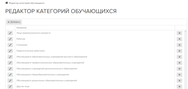 Во избежание некорректного отображения категорий обучающихся в Конструкторе и Каталоге, настоятельно рекомендуется не менять уже добавленные элементы.