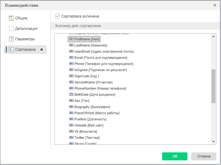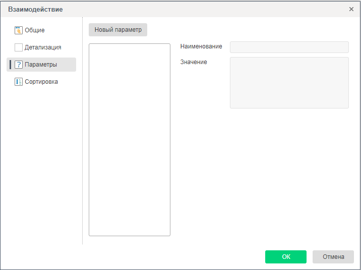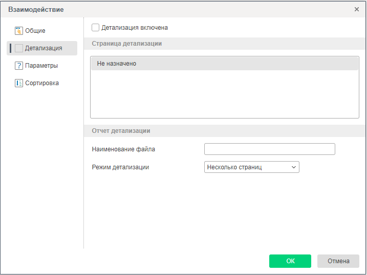 Для того чтобы включить взаимодействие в отчете, следует выделить компонент в отчете и вызвать редактор взаимодействий. Для того чтобы вызвать редактор взаимодействий, следует выделить компонент и на панели свойств нажать кнопку Взаимодействие.