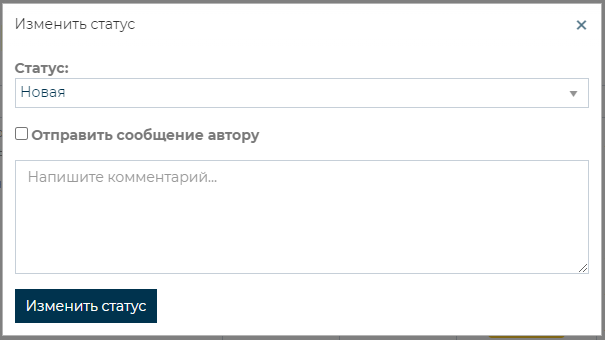 Для изменения статуса ошибки необходимо нажать на кнопку