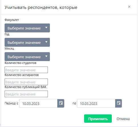 Отображение вкладки «Статистика». Ответы респондентов – Фильтрация результатов