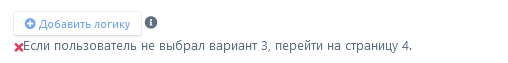 Анкетирование включает в себя возможность добавления логических переходов, исходя из выбранных пользователям действий. Например, если пользователь выбрал вариант 3, то перейти на страницу 4.