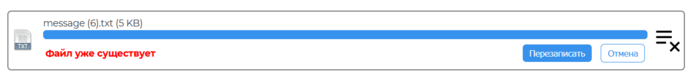 Если уже загруженный файл нужно заменить, то загружается файл с таким же именем, и при загрузке необходимо нажать «Перезаписать».