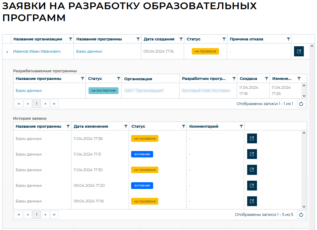 На данной странице представлены все заявки на разработку образовательных программ.